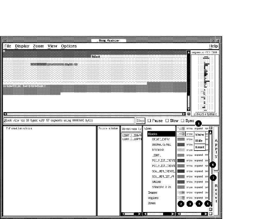 | 5. Save Pop-Up | Controls the Heap Analyzer's ability to show and store information on the segment types you have selected. The Remove menu item destroys all information; Save restores the ability to show and store information; and Reset cancels your choice. |