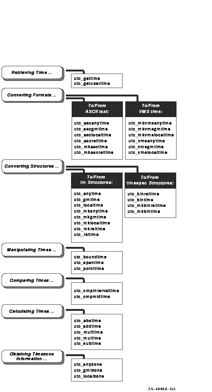 Figure 9-5 categorizes the DECdts portable interface routines by function.