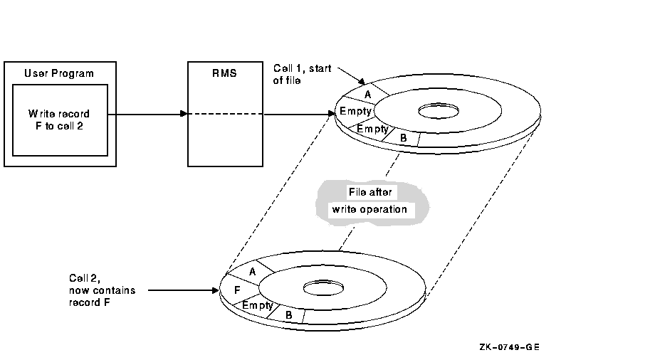 Note that although RMS cannot store a new record in a cell that is already occupied, your program can modify the record occupying the cell.