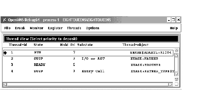 To modify a task's (thread's) characteristics or the tasking environment while debugging, choose one of the following items from the Threads menu: