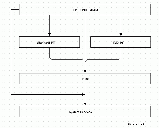 The HP C RTL includes the Standard I/O functions that should exist on all C compilers, and also the UNIX I/O functions to maintain compatibility with as many other implementations of C as possible. However, both Standard I/O and UNIX I/O use RMS to access files. To understand how the Standard I/O and UNIX I/O functions manipulate RMS formatted files, learn the fundamentals of RMS. See Section 1.8.1 for more information about Standard I/O and UNIX I/O in relationship to RMS files. For an introduction to RMS, see the Guide to OpenVMS File Applications.
