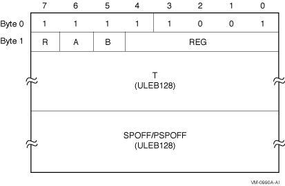 The A, B, and REG fields identify the register being spilled. The encodings are given in the following table: