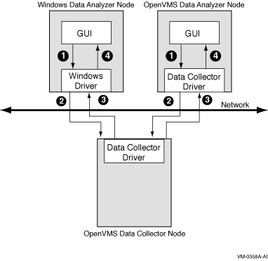 More than one Windows or OpenVMS Data Analyzer node can collect data from the same Data Collector node. |
