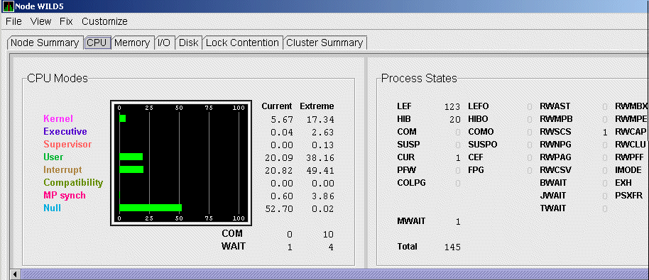 | Wait | Percentage of time the process is in the COM or COMO state. |
