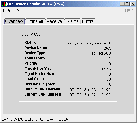 To display device details, select the LAN Device Details... item on the menu. After a brief delay, a LAN Device Overview Data page (Figure 4-9) is displayed.