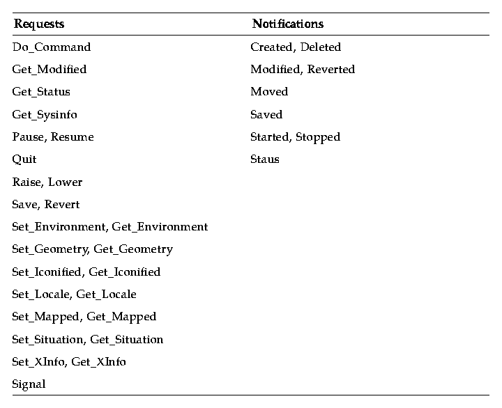 This request allows tools to provide a message interface to functionality that is not supported through any standard (or even tool-specific) message interface. This message, therefore, constitutes a deprecated interface when the intended function is available through an existing message interface.