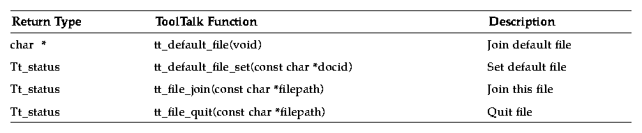 Table 9-3 ToolTalk Functions for Joining Files of Interest